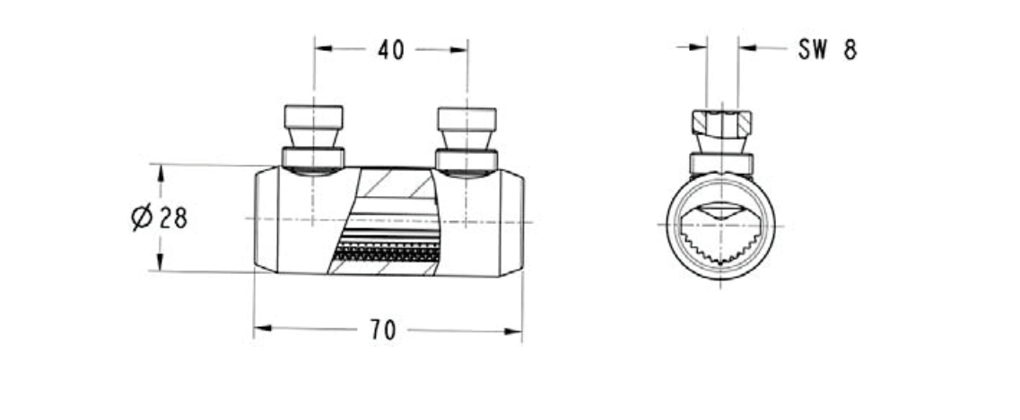 The connector is made of aluminium alloy body tin plated or natural finish. Its inner surface grooved at the manufacturing stage provides good electrical contact with wires to be joined.