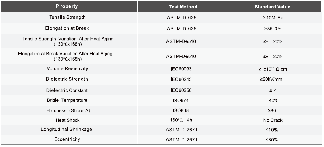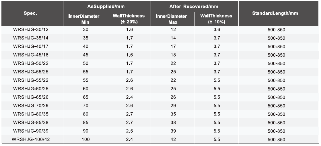• Shrink temperature: start at 90°C, and fully recovered at 130°C