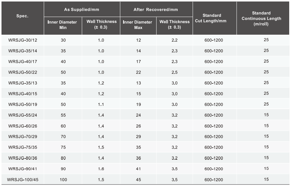 Manufactured from cross linked polyolefin, inner coated with adhesive at one end.