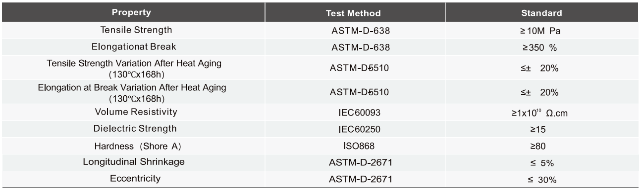 Shrink temperature: start at 90°C, and fully recovered at 130°C